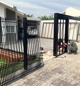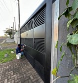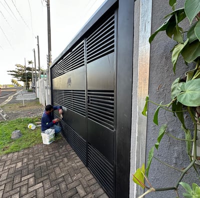 Portões personalizados em ferro e alumínio, com design moderno e alta segurança.